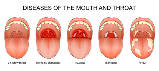 6) Throat becomes swollen, ear pain starts. The disease spreads up to the nose.